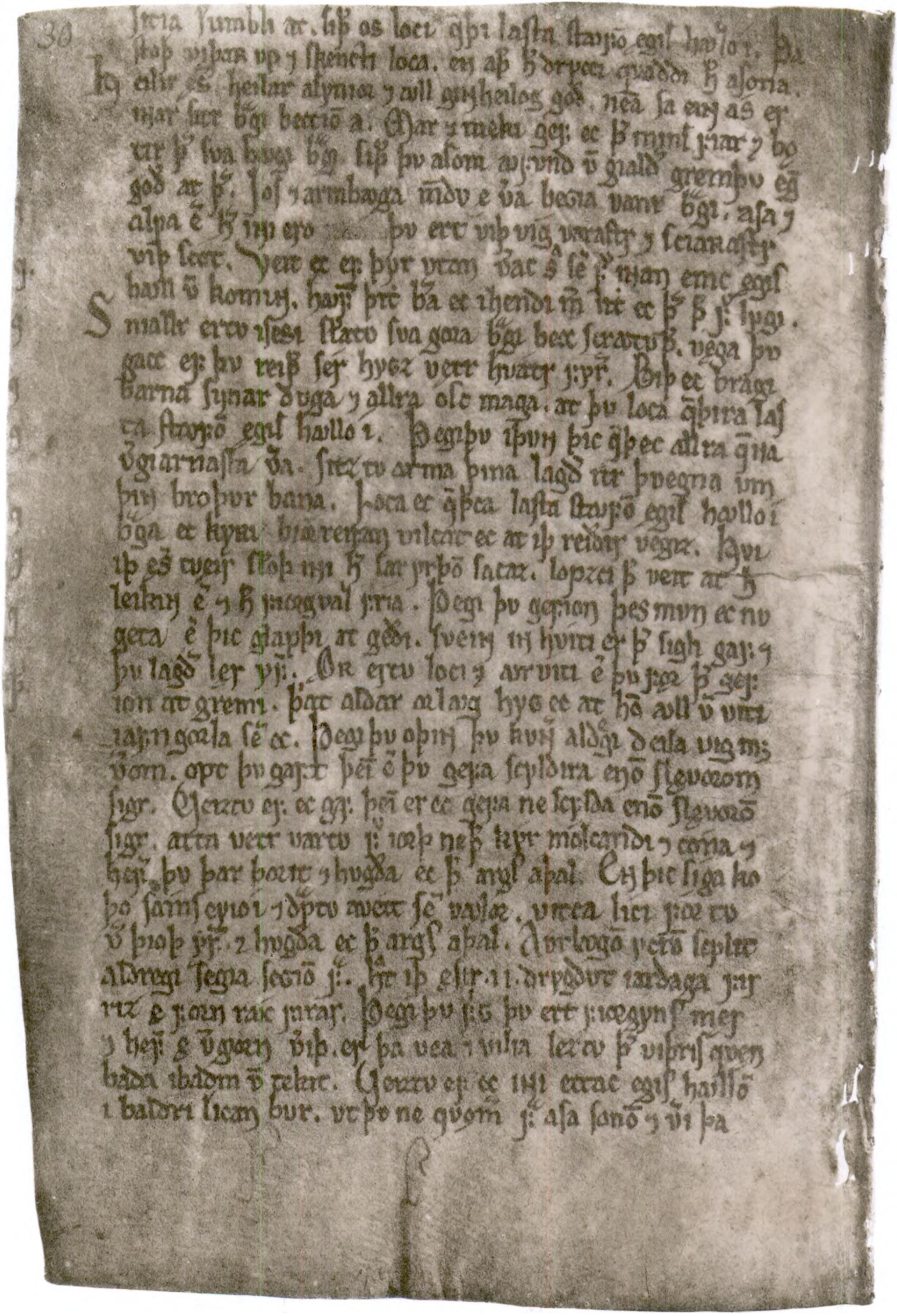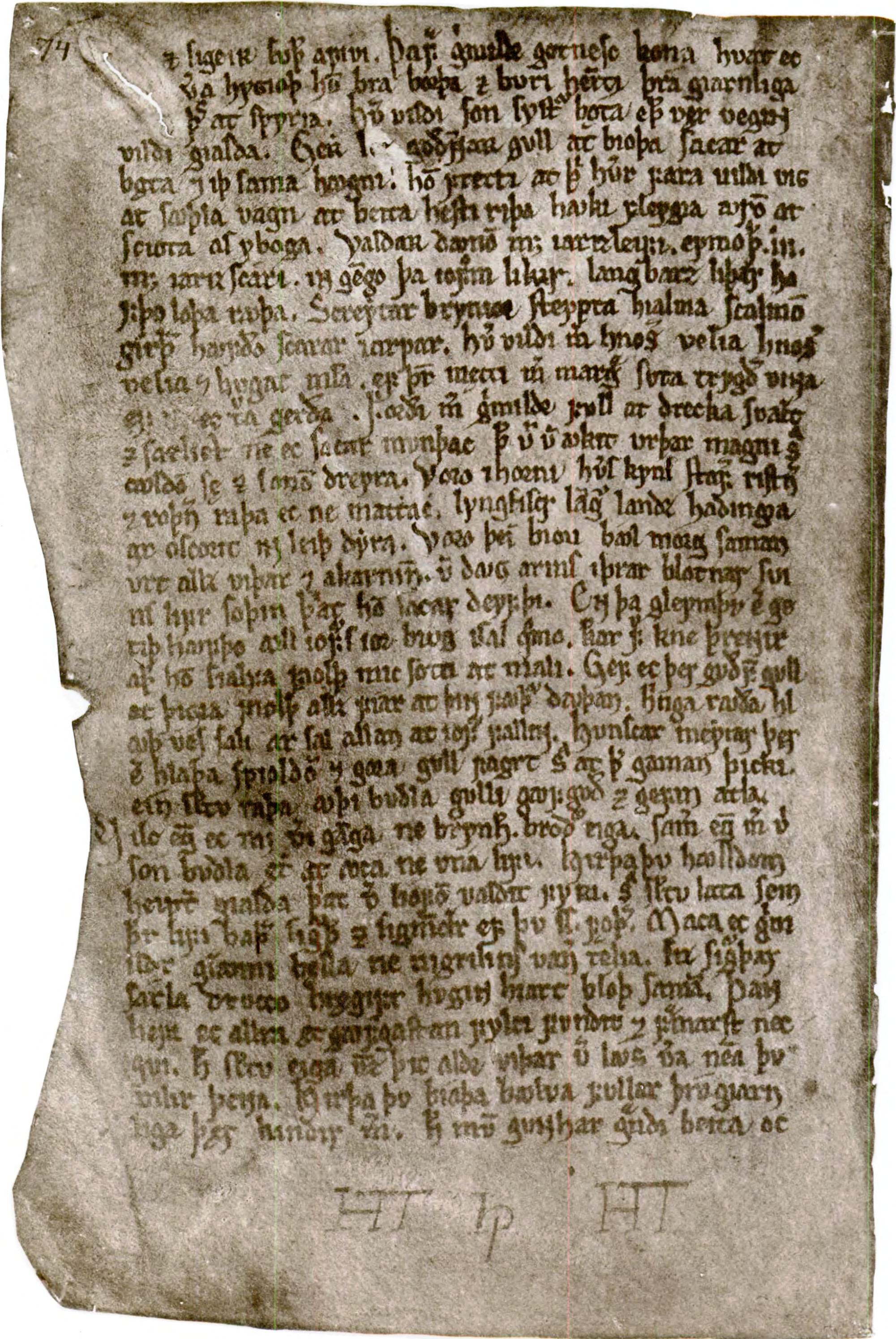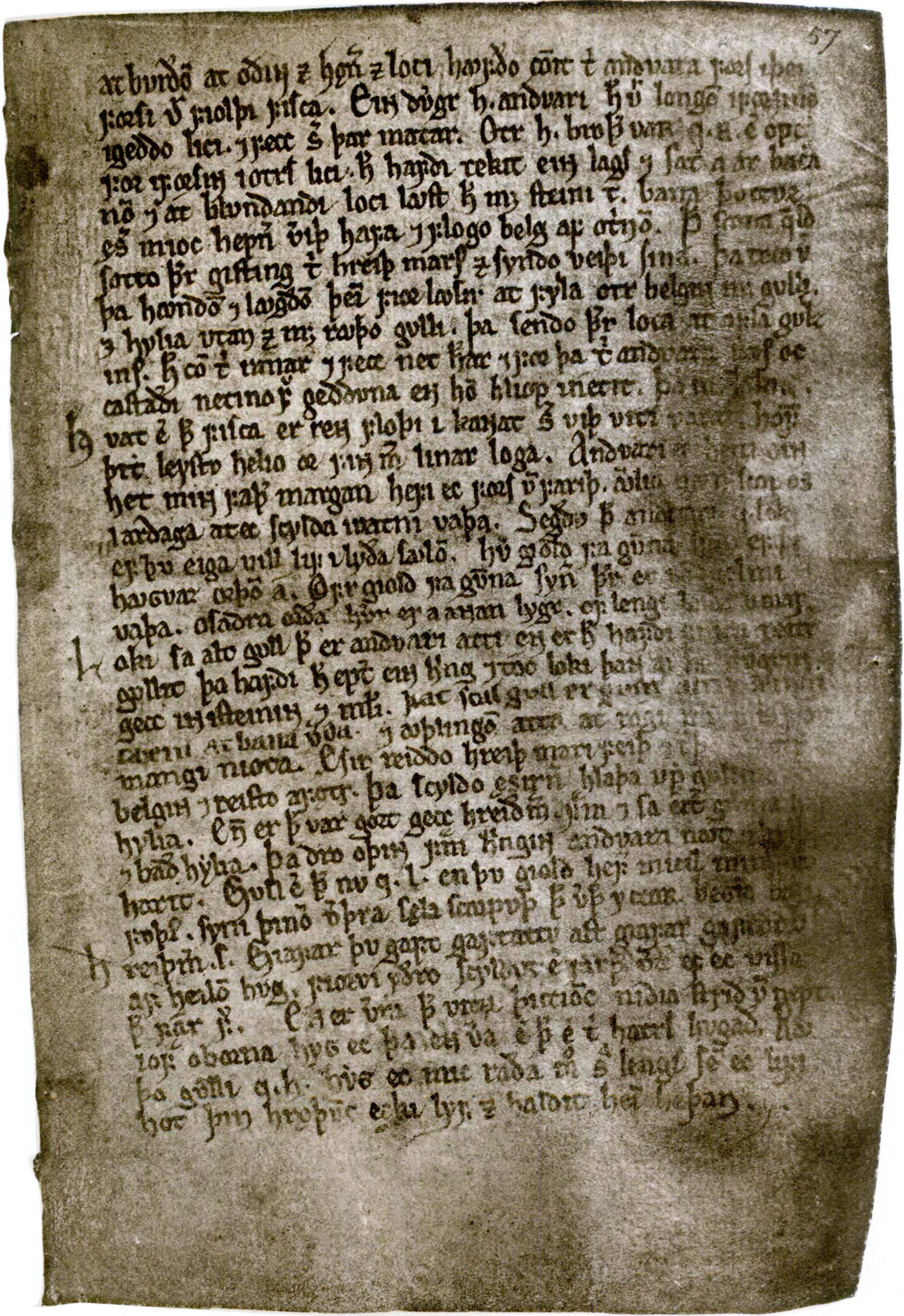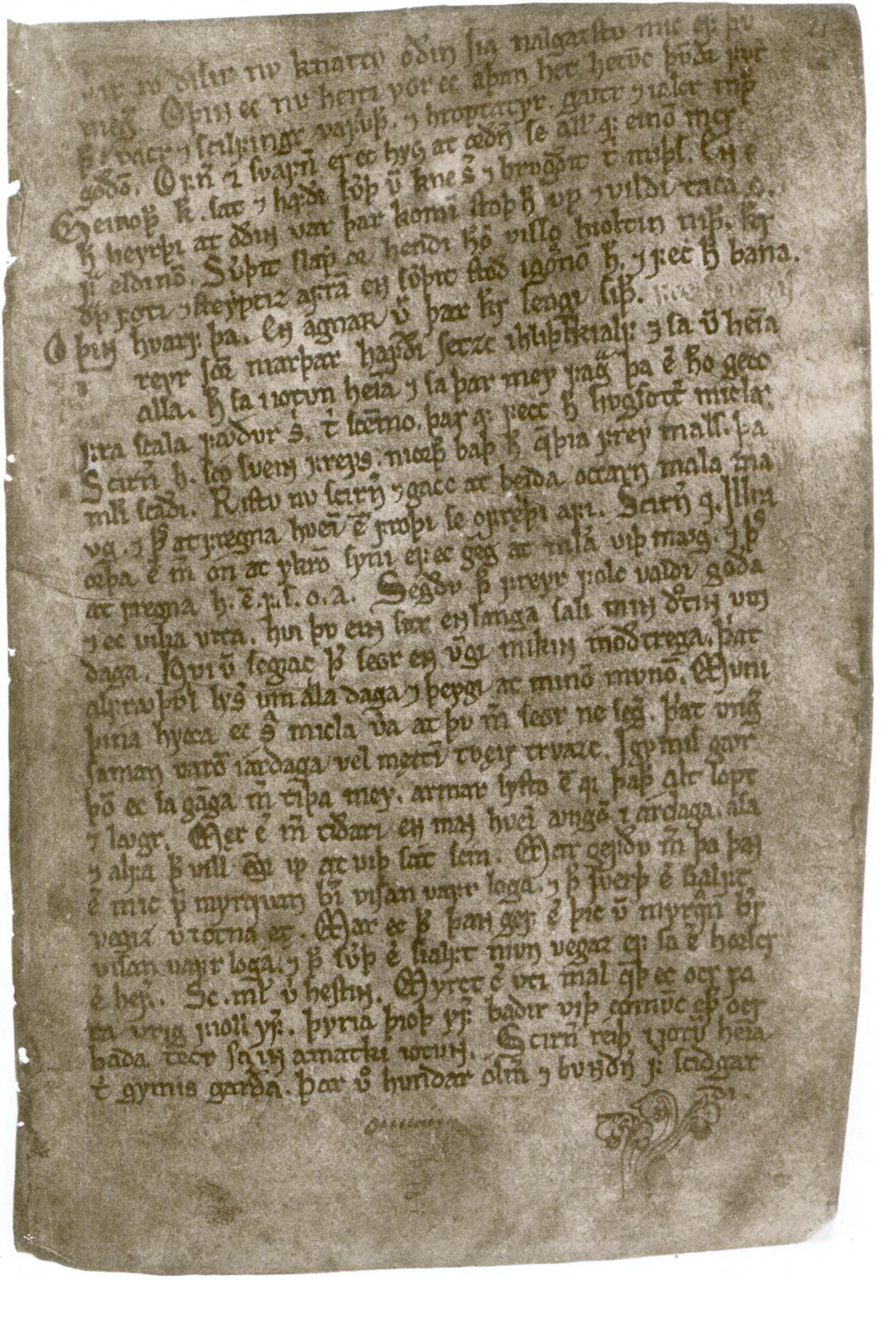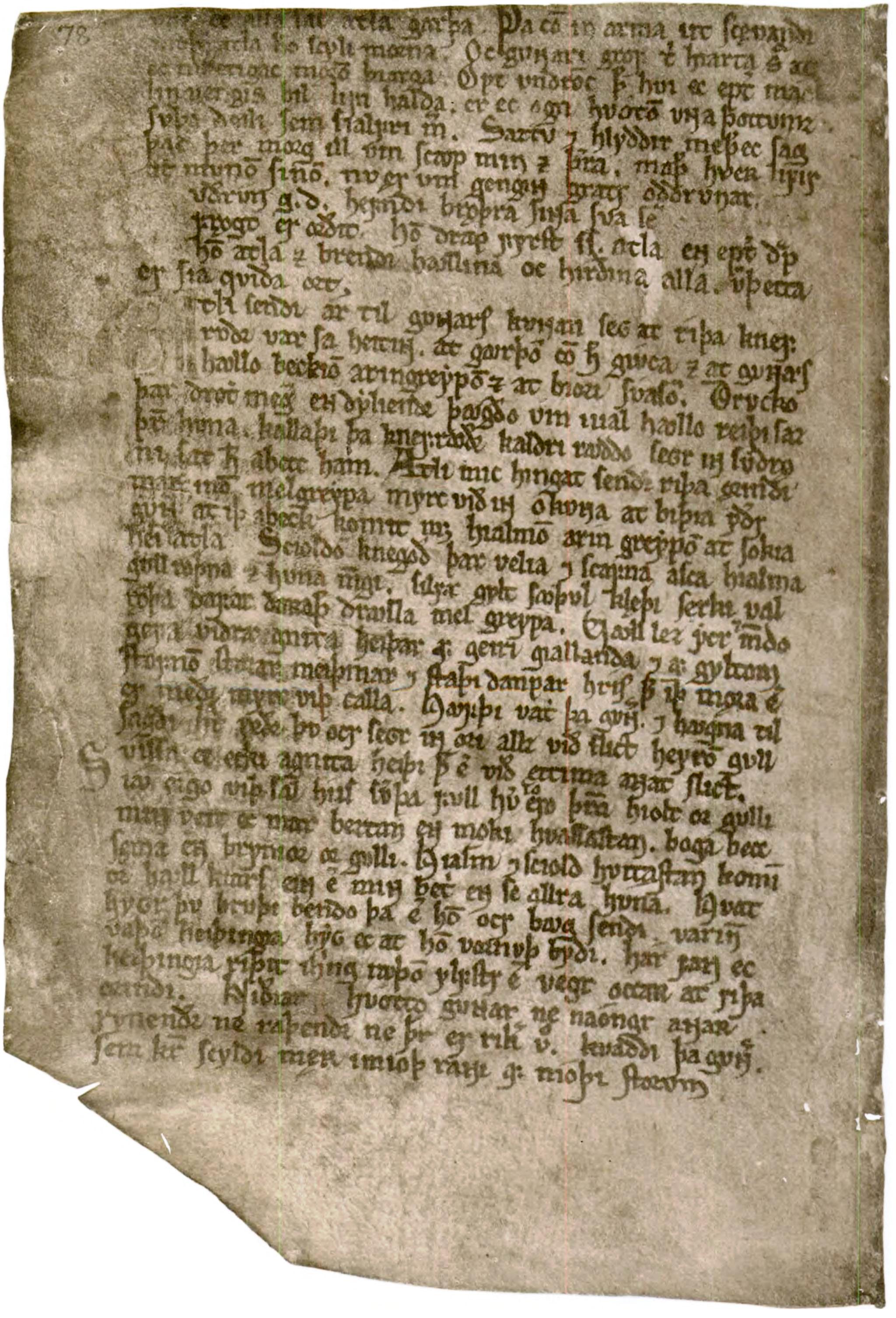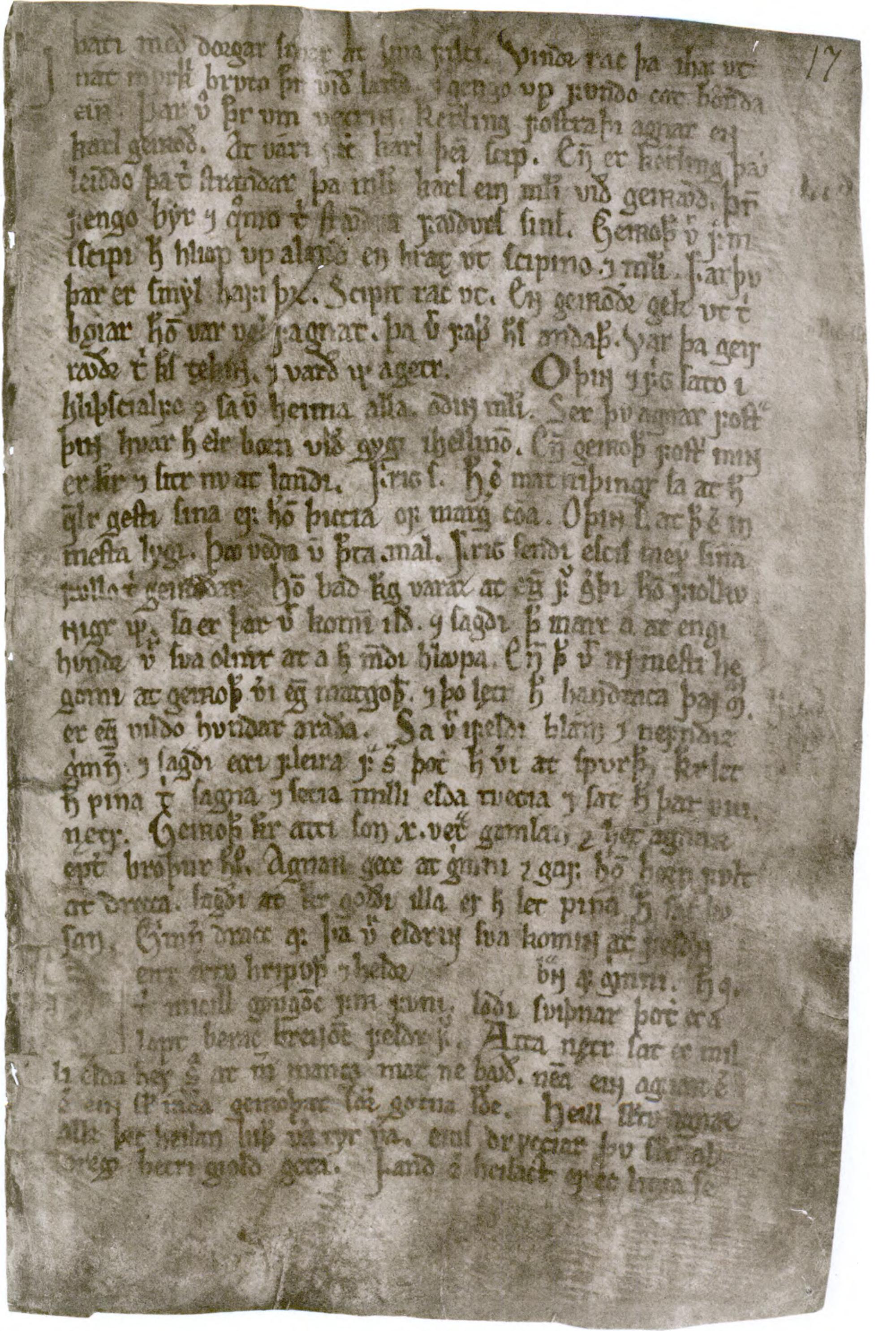 "For logical reasons, the Codex Regius (Gammel kongelig samling 2365 4to) is today regarded as one of the national treasures of Iceland. Significantly, it was one of the first two manuscripts to be returned to Iceland from Denmark in 1971. Its central importance is that it contains a (slightly rusty) key to the pagan religious world not only of the settlers of Iceland, but also of the people of Scandinavia as a whole, displaying the kind of raw poetic material that Snorri Sturluson utilized when assembling his prose Edda c.1220, and of which Saxo Grammaticus was clearly aware when writing his Gesta Danorum c.1200. It must never be forgotten, however, that the manuscript in question was written nearly 300 years after the official acceptance of Christianity in Iceland (in 999/750). The manuscript's contents may well have ancient, pagan roots, but researchers seeking to make use of this material should remember that it is likely to have existed in oral tradition long before it came to be recorded; and that while it now exists in textual form, it was originally meant to be received orally and visually in performance rather than read privately. ... To judge from the small size of these manuscripts and the economical use they make of space, neither was judged by the people of the time as being as important as, for example, the Möðruvallabók and Flateyjarbók manuscripts of the sagas, or the Stjórn manuscript of part of the Bible." Einar G. Petursson, Medieval Scandinavia, (1988): "Codex Regius of the Poetic Edda is an Icelandic manuscript of ninety small quarto pages, but the fifth gathering, probably 16 pages, is now lost. The manuscript was written by one hand not known elsewhere, and is dated palaeographically to about 1270-1280. Codex Regius is the most important manuscript of eddic poetry. It now contains 29 poems in systemic order; the first 10 lays are about the ancient Norse gods, but the remaining part is about ancient heroes. Codex Regius is a copy of an older manuscript now lost. The fragmentary AM 748 I 4to contains, in no particular order, seven eddic lays, and one of them, Baldrs draumr, is not preserved elsewhere. This manuscript is dated to about 1300 or a little later. The textual relationship between the two manuscripts points to a common written original. In the 1220s, Snorri Sturlusson wrote a textbook on poetry, called Snorra Edda or the Prose Edda. It is almost certain that he used the text of the mythical poems Vafþrúðnismál and Grímnismál from the common written source underlying the Poetic Edda. "...It is not known whether Codex Regius had a name originally. In 1623, Jón Guðmundsson lærði ('the learned') mentioned for the first time an Edda Sæmundr Sigfússon fróði ('the wise'; 1056-1133), older than Snorra Edda. In 1643, when Bishop Brynjólfur Sveinsson in Skáholt obtained Codex Regius (we do not know from where), he believed it was the Edda by Sæmundar, although it is now thought that Sæmundar played no role in collecting or writing Codex Regius. A name and note in the manuscript indicate that it had been in Skagafjörður (in the north) or on the Reykjanes peninsula (southwest) during the previous years. The last poem before the lacuna is Sigrdrifumál, with the last part of it missing. This poem is preserved complete in paper copies from the 17th century. The lay is found in Völsungasaga as well, but in 1641 Brynjólfur Sveinsson received the only parchment manuscript of this saga, and at least two commentaries on Sigurdrifumál were written for him. It seems certian that there is a direct connection between the copying of the complete text of Sigrdrifumál and the activities in connection with Völsungasaga after 1641. The lacuna in Codex Regius accordingly occurred after 1641, but before 1643. Brynjólfur Sveinsson presented the manuscript to the King of Denmark in 1662, hence the name Codex Regius ('King's Book'). In the Royal Library, it was given number GkS 2365 4to. It was brought back to Iceland on April 21, 1971, and is now in the Árni Magnússon Institute in Iceland." Gudbrand Vigfússon, Corpus Poeticum Boreale, 1883: "Chief of all Icelandic manuscripts, the treasure of the Royal Library at Copenhagen is Codex Regius (R), no. 2365, the history of whose appearance in the learned world we have already spoken of; a narrow octavo, now in an 18th century binding, with the royal arms of Christian VII (c. 1780). What its former binding in Bishop's Brynjólf's days was, is not known; the second binder did the vellum some harm by plowing its edges. We should have liked to have had its original cover, but that was probably lost before the worthy, but misguided, librarian ordered it a new coat. It consists of five complete sheets and one final sheet, from which three blank leaves have been cut; but between the fourth and the fifth sheets a sheet at least is missing (the sheet of the Lacuna). This Lacuna existed when Bishop Byrnjólf got the manuscript for he has noted at the top of the fifth sheet, 'λόγος άκεΦαλος' ['A speech or tale without beginning']. But for this the manuscript is perfect. The first page, dark and grimy, is yet perfectly preserved, signed by the good Bishop's monogram. There is no superscription (Edda or otherwise) in the old hand." [etc.] |