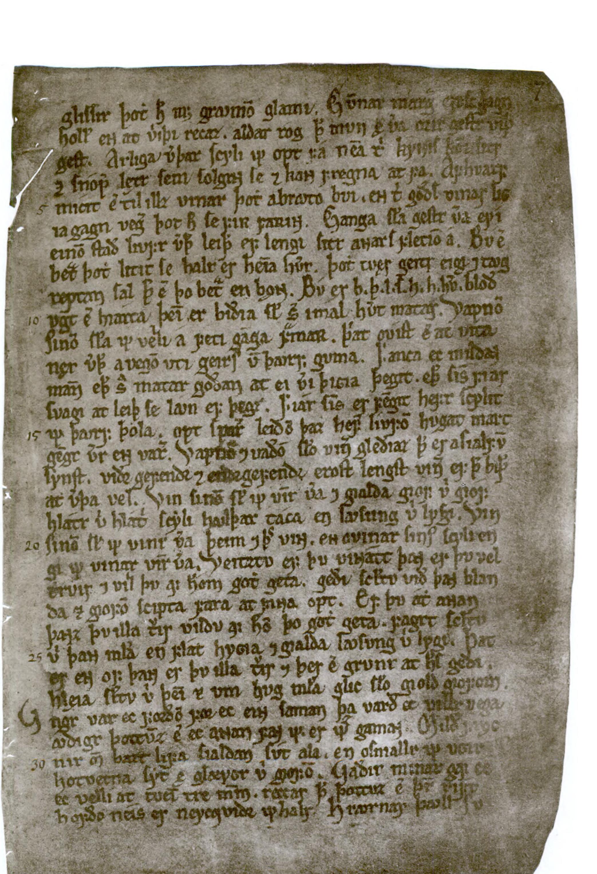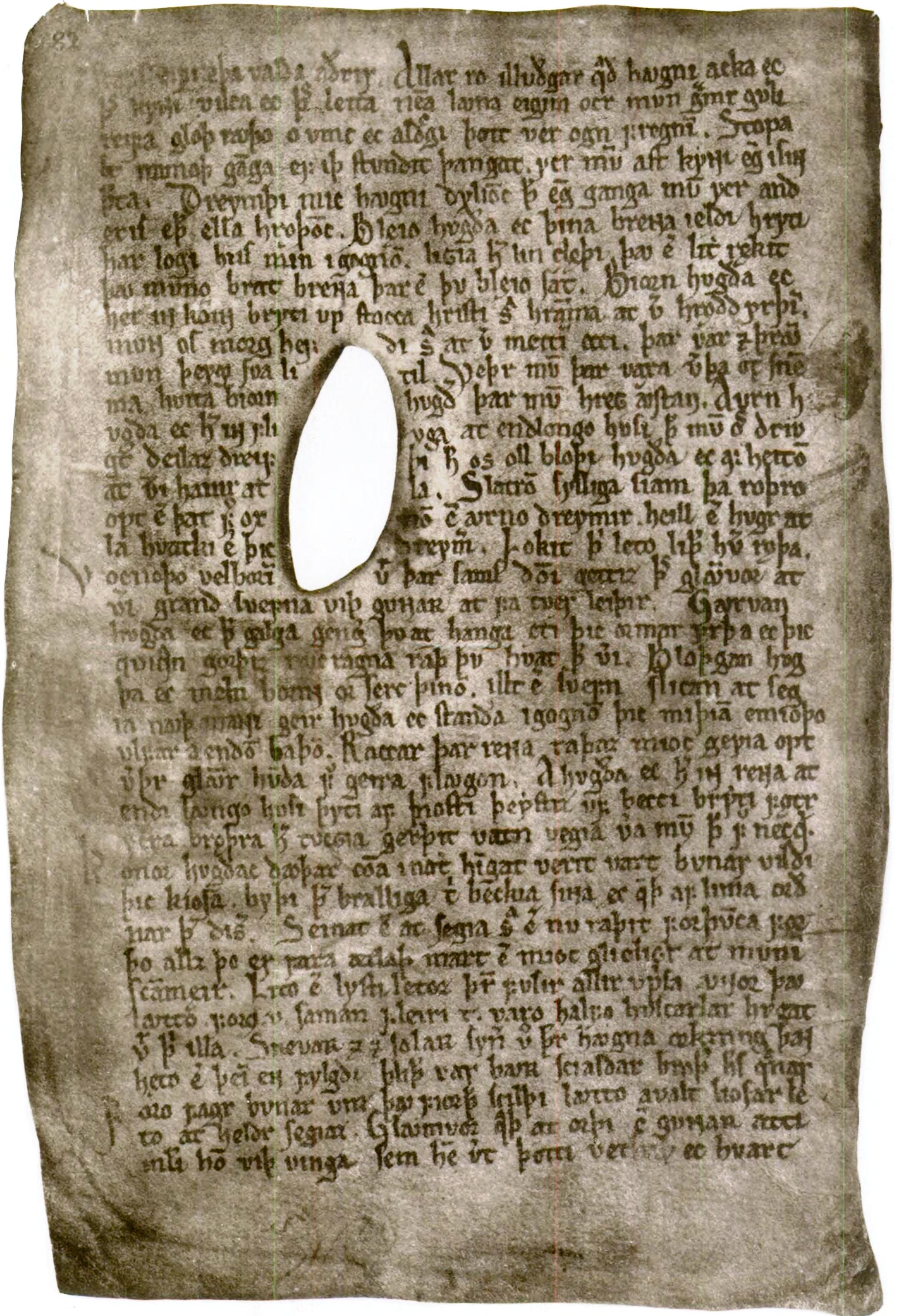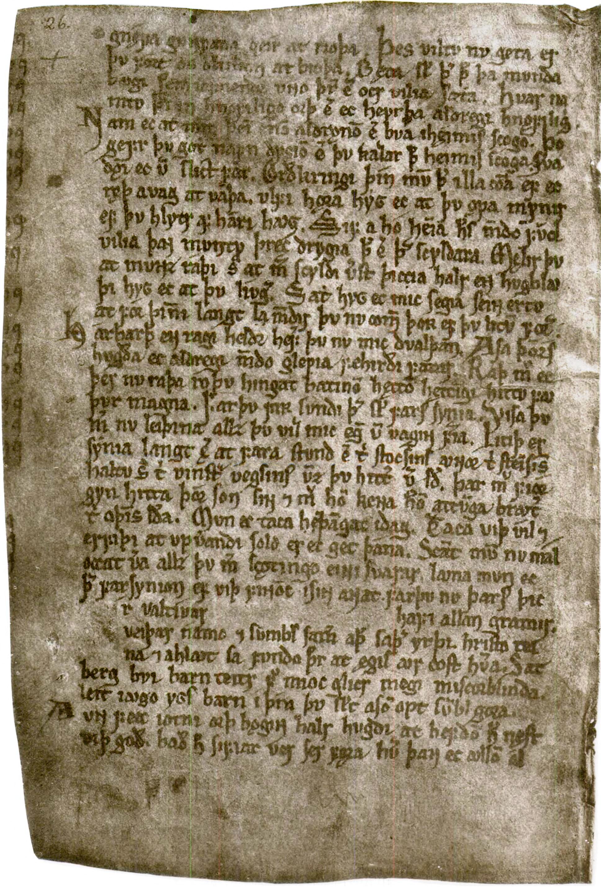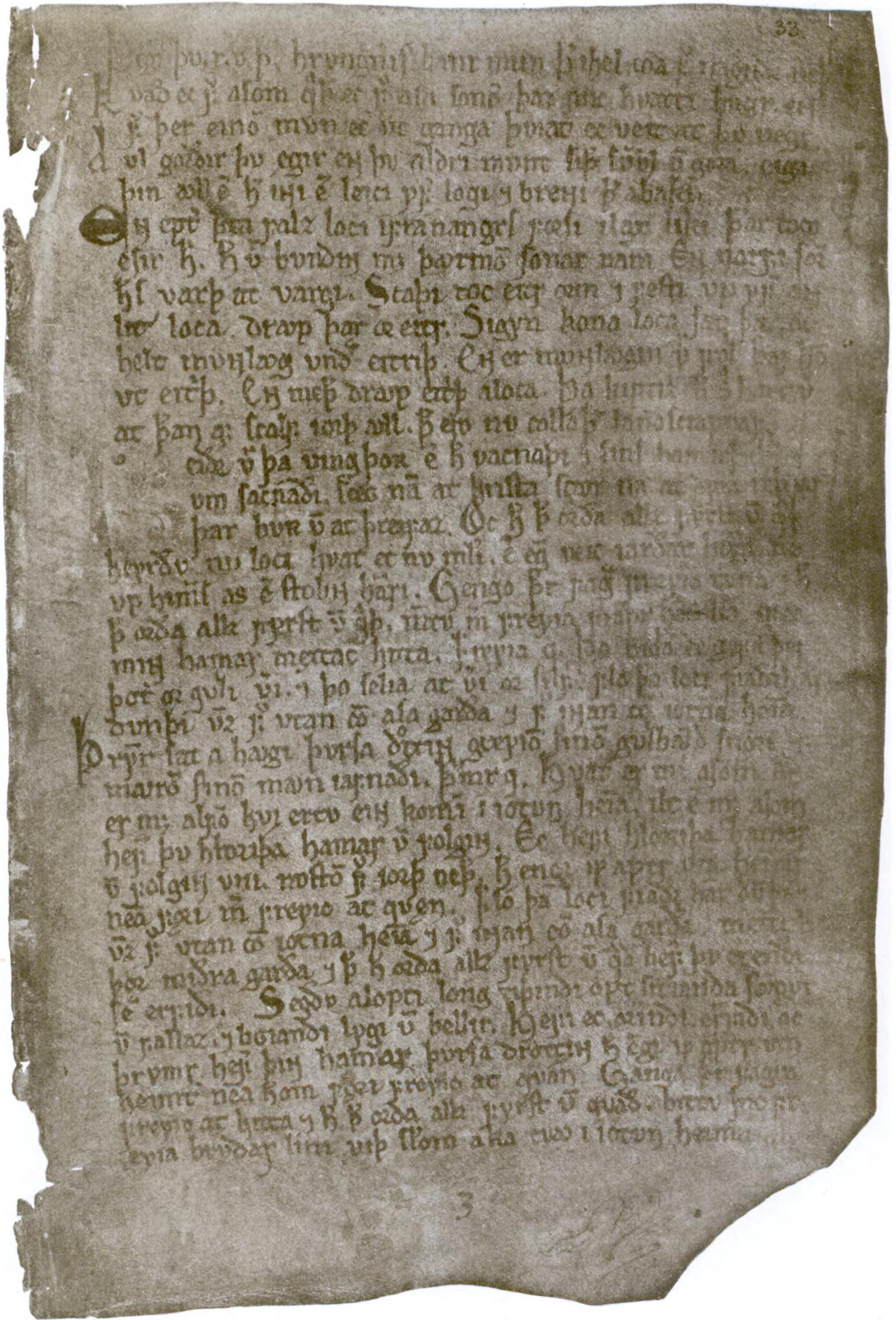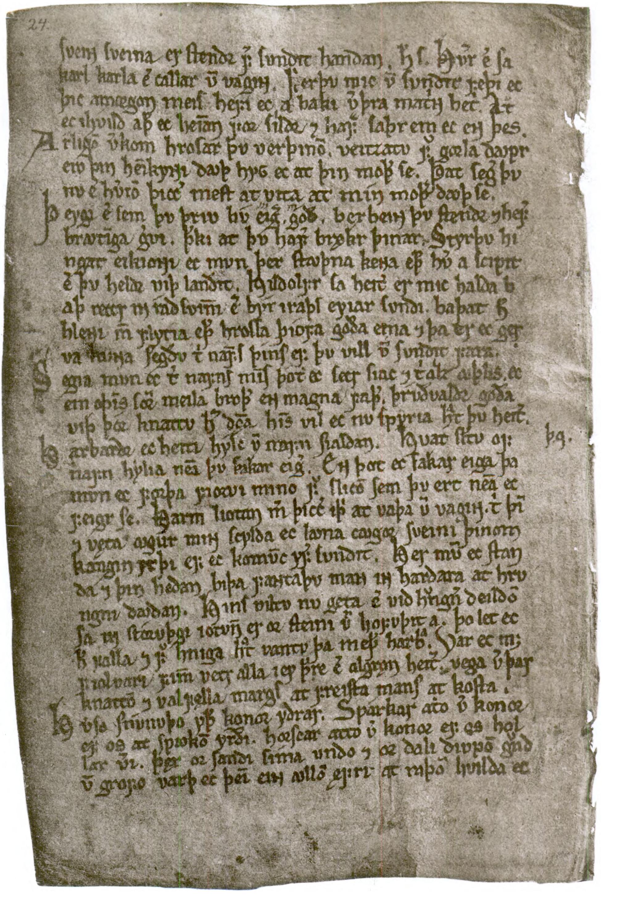 "For logical reasons, the Codex Regius (Gammel kongelig samling 2365 4to) is today regarded as one of the national treasures of Iceland. Significantly, it was one of the first two manuscripts to be returned to Iceland from Denmark in 1971. Its central importance is that it contains a (slightly rusty) key to the pagan religious world not only of the settlers of Iceland, but also of the people of Scandinavia as a whole, displaying the kind of raw poetic material that Snorri Sturluson utilized when assembling his prose Edda c.1220, and of which Saxo Grammaticus was clearly aware when writing his Gesta Danorum c.1200. It must never be forgotten, however, that the manuscript in question was written nearly 300 years after the official acceptance of Christianity in Iceland (in 999/750). The manuscript's contents may well have ancient, pagan roots, but researchers seeking to make use of this material should remember that it is likely to have existed in oral tradition long before it came to be recorded; and that while it now exists in textual form, it was originally meant to be received orally and visually in performance rather than read privately. ... To judge from the small size of these manuscripts and the economical use they make of space, neither was judged by the people of the time as being as important as, for example, the Möðruvallabók and Flateyjarbók manuscripts of the sagas, or the Stjórn manuscript of part of the Bible." Einar G. Petursson, Medieval Scandinavia, (1988): "Codex Regius of the Poetic Edda is an Icelandic manuscript of ninety small quarto pages, but the fifth gathering, probably 16 pages, is now lost. The manuscript was written by one hand not known elsewhere, and is dated palaeographically to about 1270-1280. Codex Regius is the most important manuscript of eddic poetry. It now contains 29 poems in systemic order; the first 10 lays are about the ancient Norse gods, but the remaining part is about ancient heroes. Codex Regius is a copy of an older manuscript now lost. The fragmentary AM 748 I 4to contains, in no particular order, seven eddic lays, and one of them, Baldrs draumr, is not preserved elsewhere. This manuscript is dated to about 1300 or a little later. The textual relationship between the two manuscripts points to a common written original. In the 1220s, Snorri Sturlusson wrote a textbook on poetry, called Snorra Edda or the Prose Edda. It is almost certain that he used the text of the mythical poems Vafþrúðnismál and Grímnismál from the common written source underlying the Poetic Edda. "...It is not known whether Codex Regius had a name originally. In 1623, Jón Guðmundsson lærði ('the learned') mentioned for the first time an Edda Sæmundr Sigfússon fróði ('the wise'; 1056-1133), older than Snorra Edda. In 1643, when Bishop Brynjólfur Sveinsson in Skáholt obtained Codex Regius (we do not know from where), he believed it was the Edda by Sæmundar, although it is now thought that Sæmundar played no role in collecting or writing Codex Regius. A name and note in the manuscript indicate that it had been in Skagafjörður (in the north) or on the Reykjanes peninsula (southwest) during the previous years. The last poem before the lacuna is Sigrdrifumál, with the last part of it missing. This poem is preserved complete in paper copies from the 17th century. The lay is found in Völsungasaga as well, but in 1641 Brynjólfur Sveinsson received the only parchment manuscript of this saga, and at least two commentaries on Sigurdrifumál were written for him. It seems certian that there is a direct connection between the copying of the complete text of Sigrdrifumál and the activities in connection with Völsungasaga after 1641. The lacuna in Codex Regius accordingly occurred after 1641, but before 1643. Brynjólfur Sveinsson presented the manuscript to the King of Denmark in 1662, hence the name Codex Regius ('King's Book'). In the Royal Library, it was given number GkS 2365 4to. It was brought back to Iceland on April 21, 1971, and is now in the Árni Magnússon Institute in Iceland." Gudbrand Vigfússon, Corpus Poeticum Boreale, 1883: "Chief of all Icelandic manuscripts, the treasure of the Royal Library at Copenhagen is Codex Regius (R), no. 2365, the history of whose appearance in the learned world we have already spoken of; a narrow octavo, now in an 18th century binding, with the royal arms of Christian VII (c. 1780). What its former binding in Bishop's Brynjólf's days was, is not known; the second binder did the vellum some harm by plowing its edges. We should have liked to have had its original cover, but that was probably lost before the worthy, but misguided, librarian ordered it a new coat. It consists of five complete sheets and one final sheet, from which three blank leaves have been cut; but between the fourth and the fifth sheets a sheet at least is missing (the sheet of the Lacuna). This Lacuna existed when Bishop Byrnjólf got the manuscript for he has noted at the top of the fifth sheet, 'λόγος άκεΦαλος' ['A speech or tale without beginning']. But for this the manuscript is perfect. The first page, dark and grimy, is yet perfectly preserved, signed by the good Bishop's monogram. There is no superscription (Edda or otherwise) in the old hand." [etc.] |