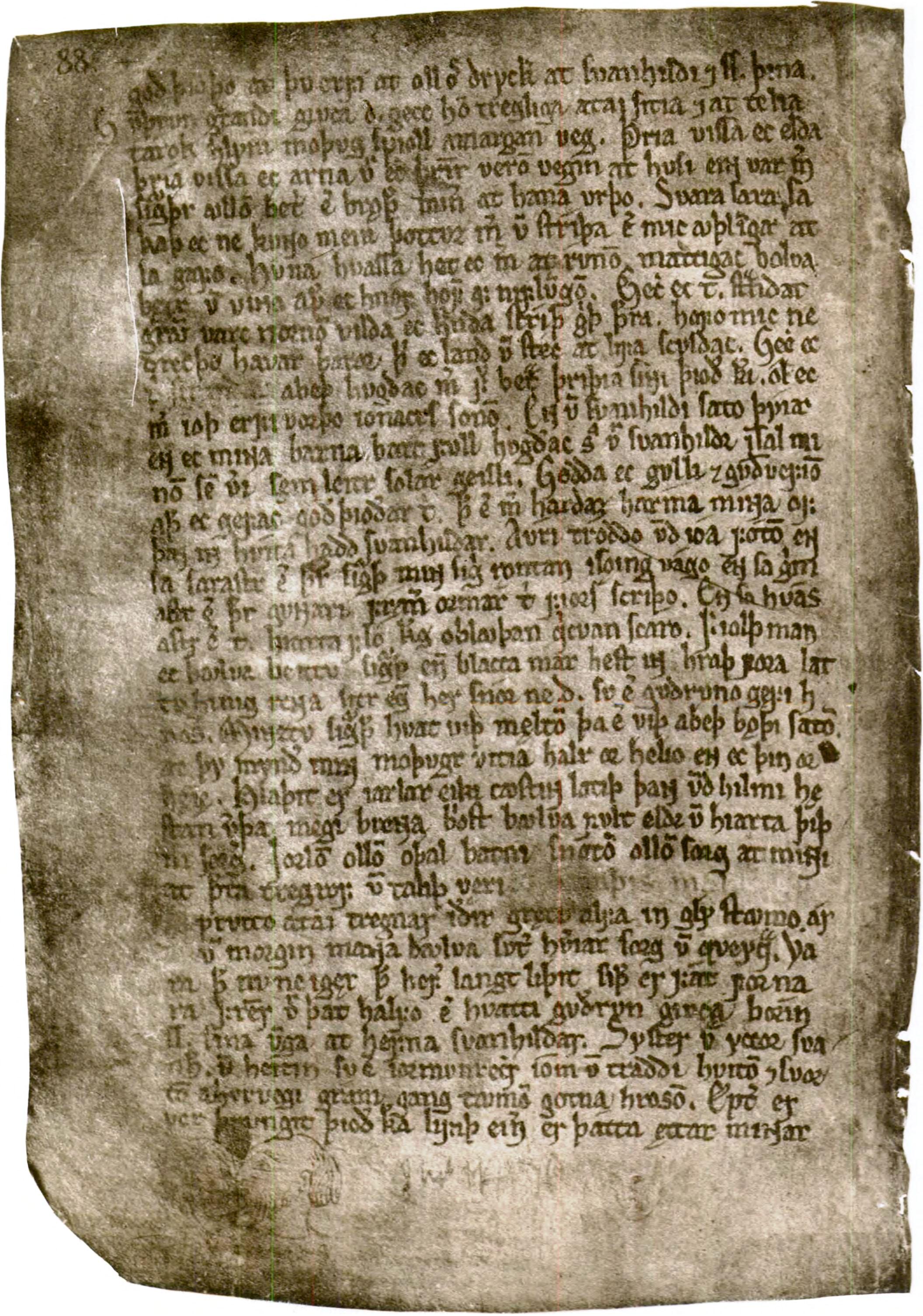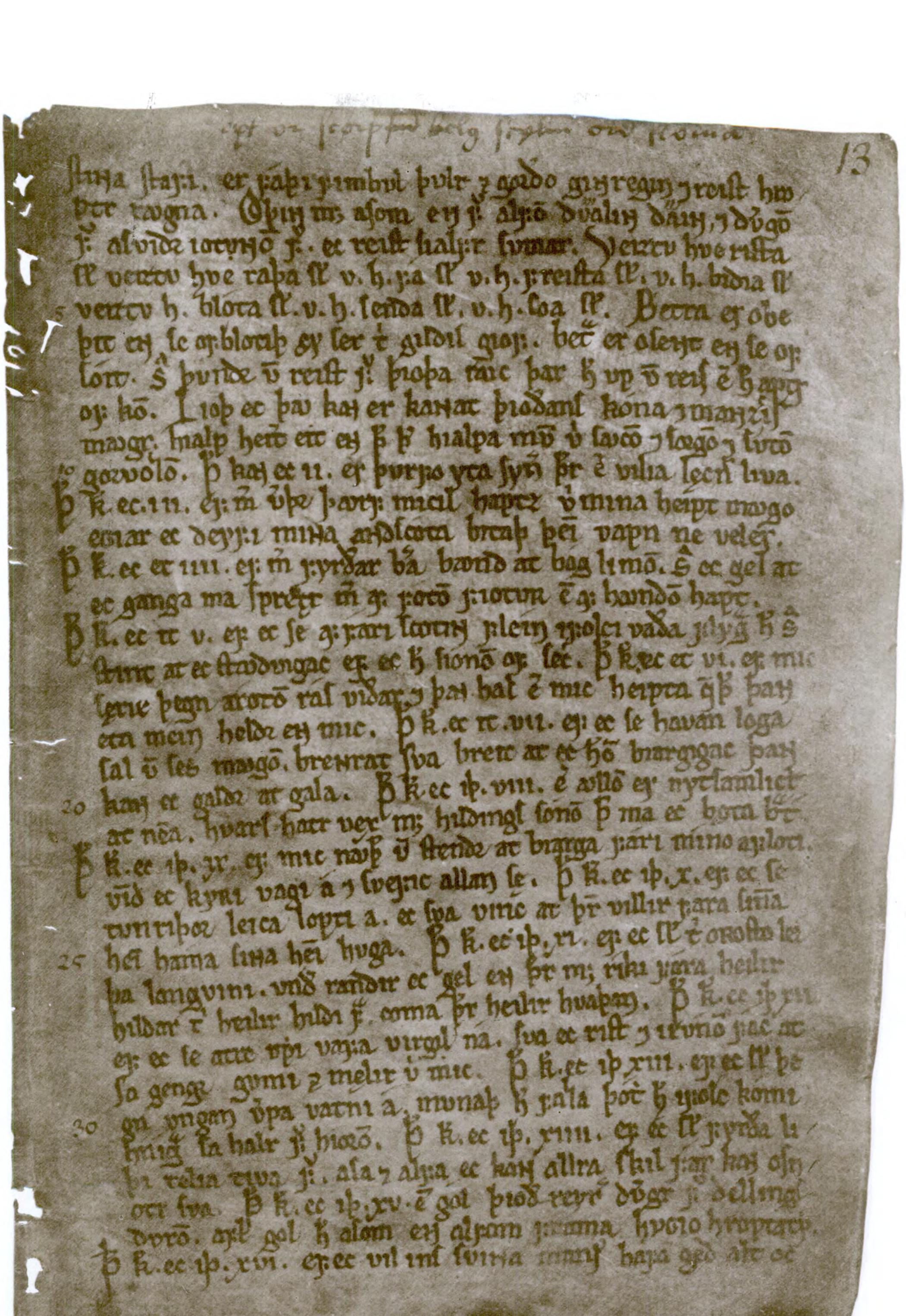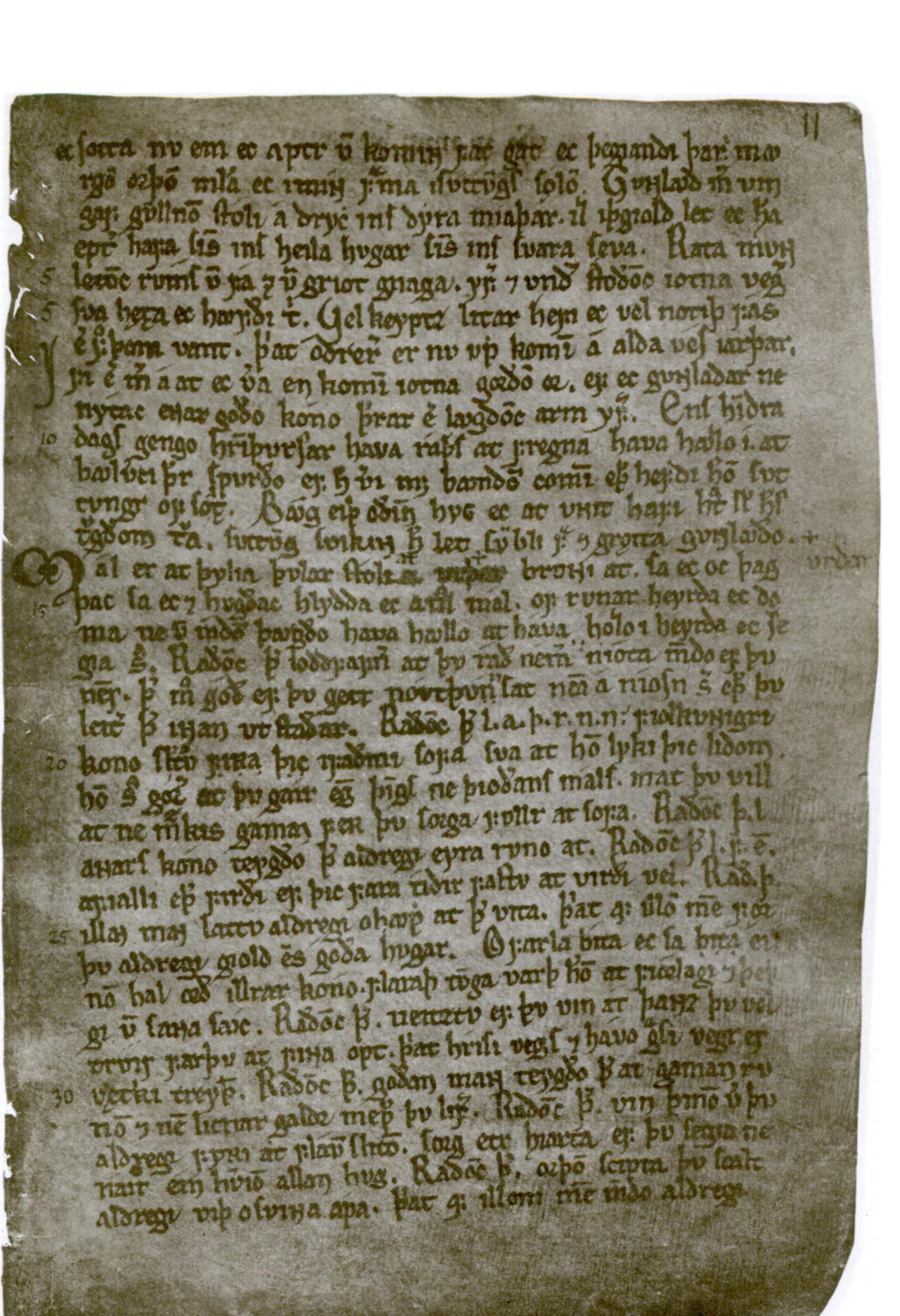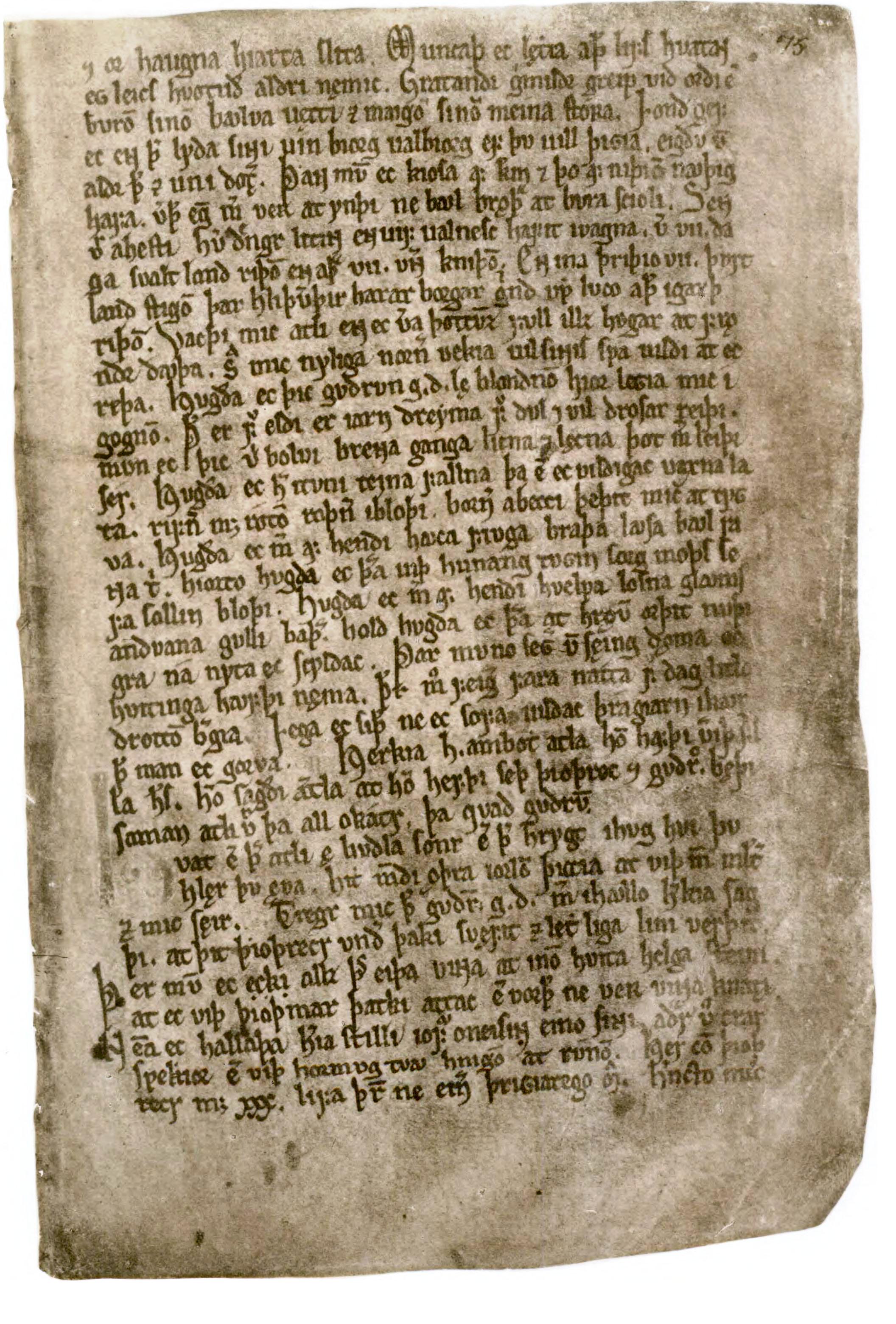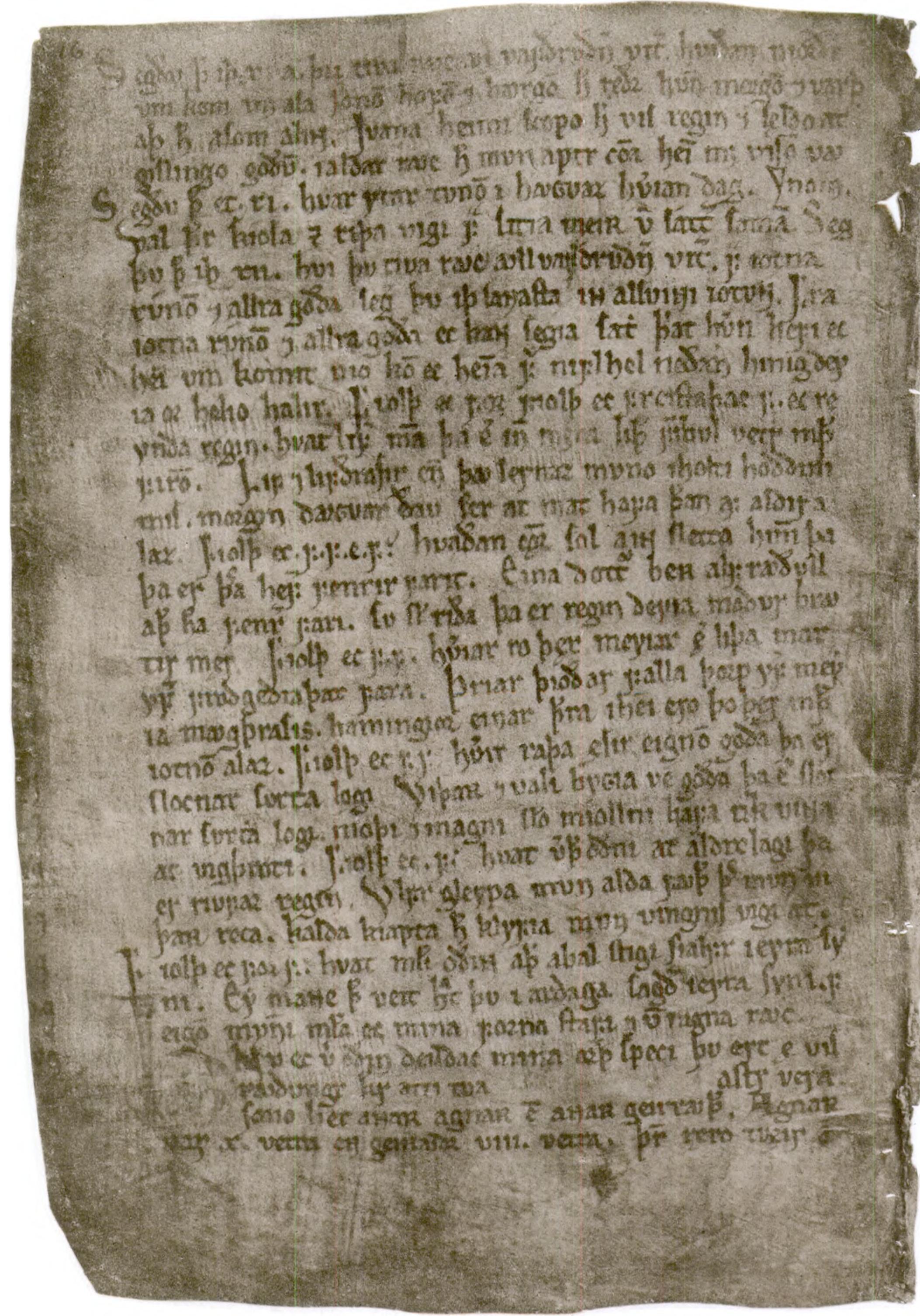 "For logical reasons, the Codex Regius (Gammel kongelig samling 2365 4to) is today regarded as one of the national treasures of Iceland. Significantly, it was one of the first two manuscripts to be returned to Iceland from Denmark in 1971. Its central importance is that it contains a (slightly rusty) key to the pagan religious world not only of the settlers of Iceland, but also of the people of Scandinavia as a whole, displaying the kind of raw poetic material that Snorri Sturluson utilized when assembling his prose Edda c.1220, and of which Saxo Grammaticus was clearly aware when writing his Gesta Danorum c.1200. It must never be forgotten, however, that the manuscript in question was written nearly 300 years after the official acceptance of Christianity in Iceland (in 999/750). The manuscript's contents may well have ancient, pagan roots, but researchers seeking to make use of this material should remember that it is likely to have existed in oral tradition long before it came to be recorded; and that while it now exists in textual form, it was originally meant to be received orally and visually in performance rather than read privately. ... To judge from the small size of these manuscripts and the economical use they make of space, neither was judged by the people of the time as being as important as, for example, the Möðruvallabók and Flateyjarbók manuscripts of the sagas, or the Stjórn manuscript of part of the Bible." Einar G. Petursson, Medieval Scandinavia, (1988): "Codex Regius of the Poetic Edda is an Icelandic manuscript of ninety small quarto pages, but the fifth gathering, probably 16 pages, is now lost. The manuscript was written by one hand not known elsewhere, and is dated palaeographically to about 1270-1280. Codex Regius is the most important manuscript of eddic poetry. It now contains 29 poems in systemic order; the first 10 lays are about the ancient Norse gods, but the remaining part is about ancient heroes. Codex Regius is a copy of an older manuscript now lost. The fragmentary AM 748 I 4to contains, in no particular order, seven eddic lays, and one of them, Baldrs draumr, is not preserved elsewhere. This manuscript is dated to about 1300 or a little later. The textual relationship between the two manuscripts points to a common written original. In the 1220s, Snorri Sturlusson wrote a textbook on poetry, called Snorra Edda or the Prose Edda. It is almost certain that he used the text of the mythical poems Vafþrúðnismál and Grímnismál from the common written source underlying the Poetic Edda. "...It is not known whether Codex Regius had a name originally. In 1623, Jón Guðmundsson lærði ('the learned') mentioned for the first time an Edda Sæmundr Sigfússon fróði ('the wise'; 1056-1133), older than Snorra Edda. In 1643, when Bishop Brynjólfur Sveinsson in Skáholt obtained Codex Regius (we do not know from where), he believed it was the Edda by Sæmundar, although it is now thought that Sæmundar played no role in collecting or writing Codex Regius. A name and note in the manuscript indicate that it had been in Skagafjörður (in the north) or on the Reykjanes peninsula (southwest) during the previous years. The last poem before the lacuna is Sigrdrifumál, with the last part of it missing. This poem is preserved complete in paper copies from the 17th century. The lay is found in Völsungasaga as well, but in 1641 Brynjólfur Sveinsson received the only parchment manuscript of this saga, and at least two commentaries on Sigurdrifumál were written for him. It seems certian that there is a direct connection between the copying of the complete text of Sigrdrifumál and the activities in connection with Völsungasaga after 1641. The lacuna in Codex Regius accordingly occurred after 1641, but before 1643. Brynjólfur Sveinsson presented the manuscript to the King of Denmark in 1662, hence the name Codex Regius ('King's Book'). In the Royal Library, it was given number GkS 2365 4to. It was brought back to Iceland on April 21, 1971, and is now in the Árni Magnússon Institute in Iceland." Gudbrand Vigfússon, Corpus Poeticum Boreale, 1883: "Chief of all Icelandic manuscripts, the treasure of the Royal Library at Copenhagen is Codex Regius (R), no. 2365, the history of whose appearance in the learned world we have already spoken of; a narrow octavo, now in an 18th century binding, with the royal arms of Christian VII (c. 1780). What its former binding in Bishop's Brynjólf's days was, is not known; the second binder did the vellum some harm by plowing its edges. We should have liked to have had its original cover, but that was probably lost before the worthy, but misguided, librarian ordered it a new coat. It consists of five complete sheets and one final sheet, from which three blank leaves have been cut; but between the fourth and the fifth sheets a sheet at least is missing (the sheet of the Lacuna). This Lacuna existed when Bishop Byrnjólf got the manuscript for he has noted at the top of the fifth sheet, 'λόγος άκεΦαλος' ['A speech or tale without beginning']. But for this the manuscript is perfect. The first page, dark and grimy, is yet perfectly preserved, signed by the good Bishop's monogram. There is no superscription (Edda or otherwise) in the old hand." [etc.] |